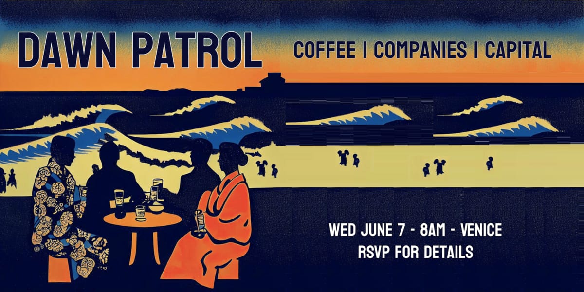 If you’re in LA for Tech Week (or you want the perfect excuse to make the journey over here!), join fellow founders & investors at Dawn Patrol, Vol. 2. Awesome opportunity to meet good people in a casual setting. See you bright and early on Wednesday, June 7!