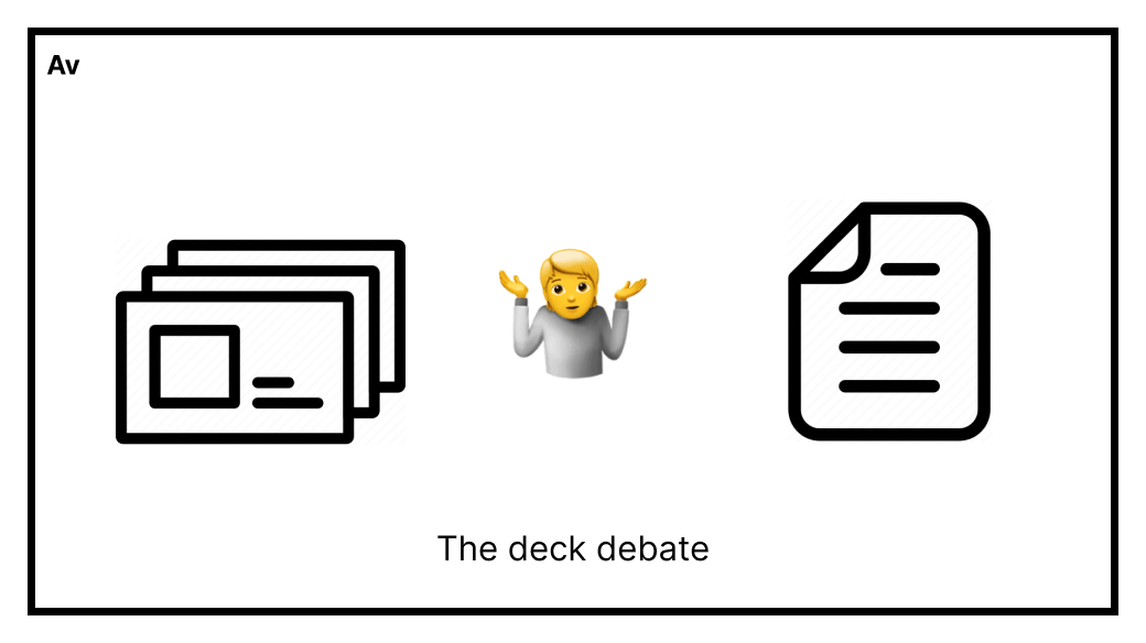 And if you do get an audience with an investor, the ability to reference slides that complement your conversation is unique to a deck. You don’t get much value out of pointing to paragraph 6 of a memo during a meeting 👉🤷♂️