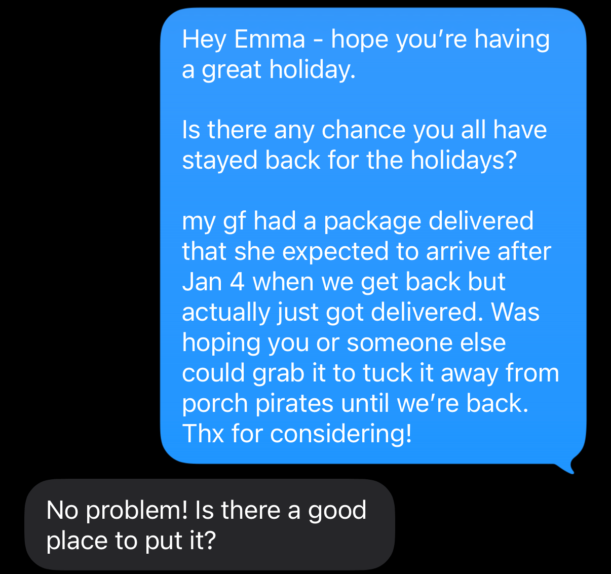 I needed someone to check on my place. I had to figure out care for my dog. I had to tell my team I’d be unavailable and make sure nothing important would break while I was gone.