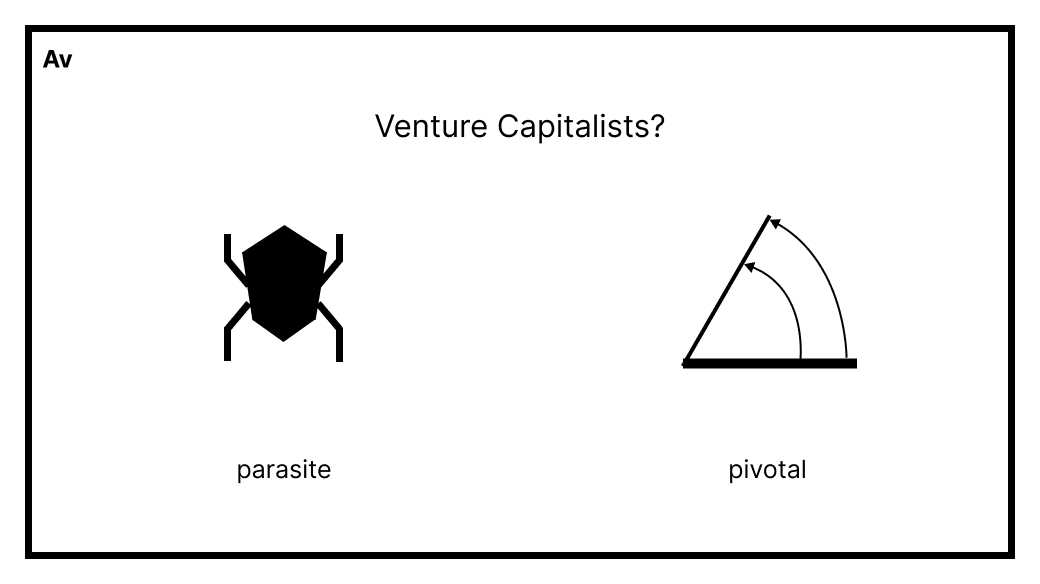 When evaluating VCs and their potential contributions, it's important to adopt a balanced perspective. VCs are neither the valueless parasites depicted in one narrative nor the exclusive difference-makers portrayed in the other, especially for the majority of founders who don’t have the luxury of choice. As a founder, the responsibility lies with you to create a process that allows you to choose the best-fit investor and to leverage the value they bring once they join your cap table.